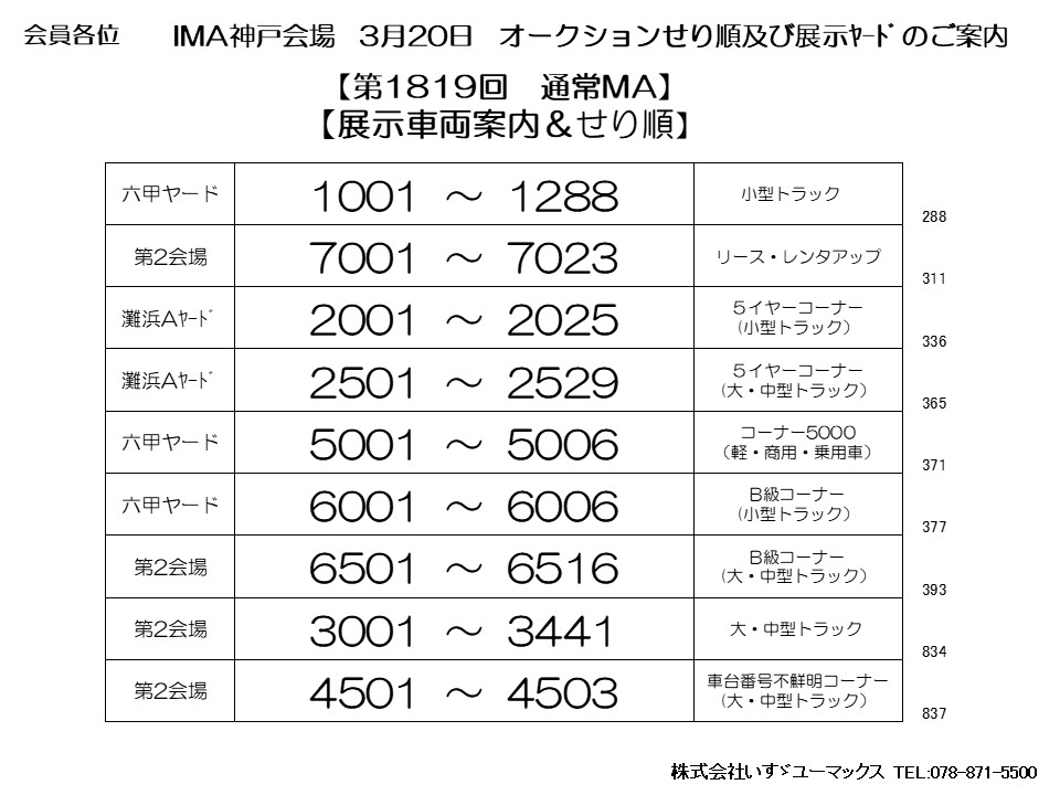 3. 3/20 IMA神戸会場 オークションせり順及び展示ヤードのご案内