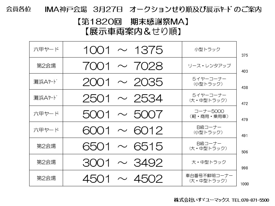 3. 3/27 IMA神戸会場 オークションせり順及び展示ヤードのご案内